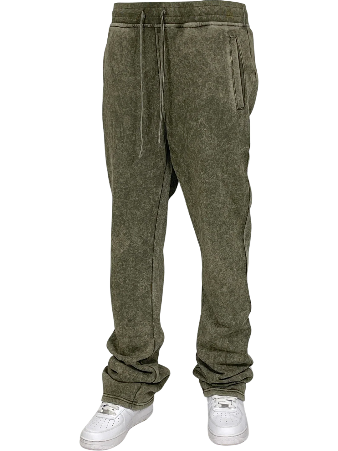 The Olive Acid Wash Stack Fleece Pants are not just stylish but also highly functional. Featuring an elastic waistband with adjustable drawstrings, they provide a secure, customizable fit that caters to all body types. The innovative stack design adds extra length while enhancing the silhouette for a modern and polished look. With deep side pockets, you’ll have ample space to carry your essentials, such as your phone, wallet, or keys. These pants promise practicality without sacrificing aesthetic appeal.